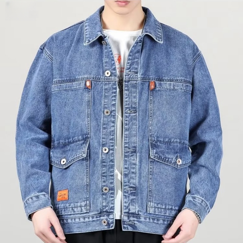 牛仔外套男潮牌春秋季新款宽松大码开衫工装夹克多口袋褂子上衣服