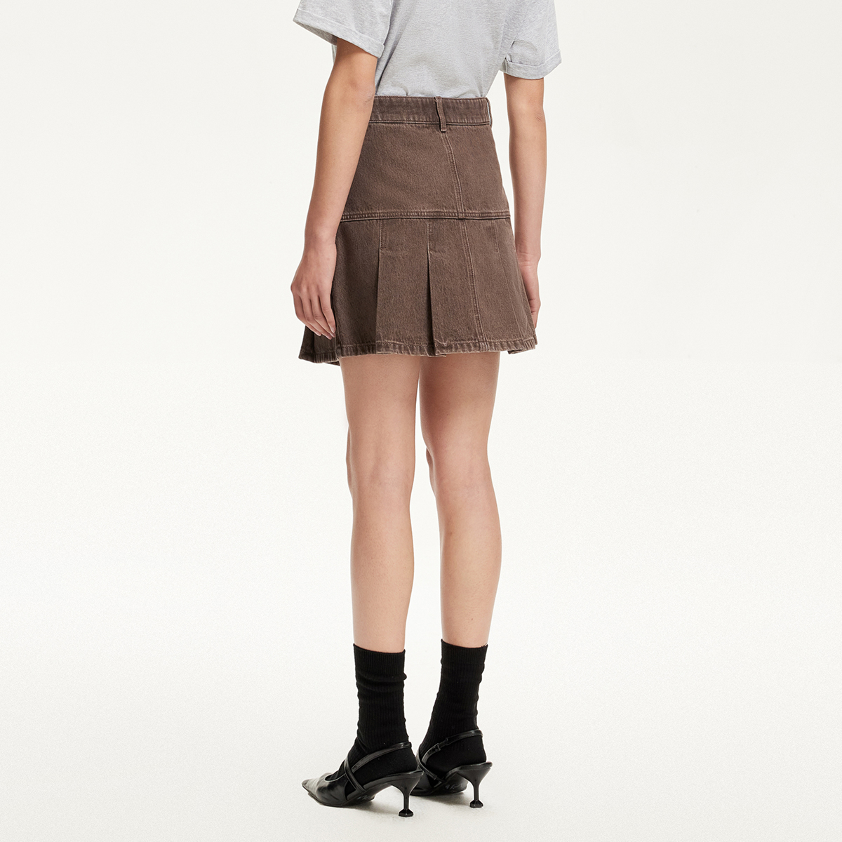 Vero Moda半身裙女2025夏季新款铆钉巴恩风牛仔百褶纯棉325237001