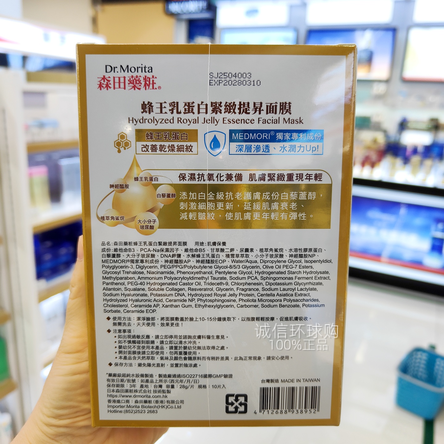香港购 台湾森田药妆三重玻尿酸蜂王乳蛋白紧致提升面膜10片 补水
