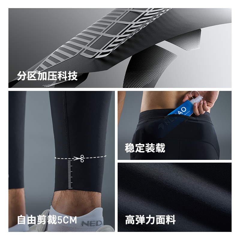 内道聚能力紧身跑步长裤男分区加压马拉松跑步训练后腰口袋压缩裤