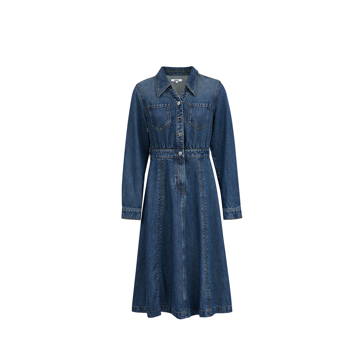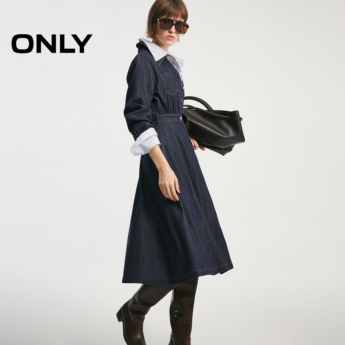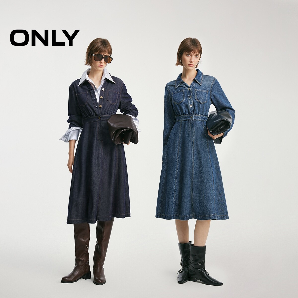 绫致ONLY2026春季A型剪裁衬衫V领贴袋解构裙摆牛仔连衣裙女