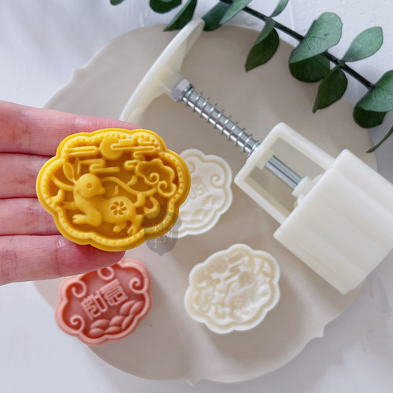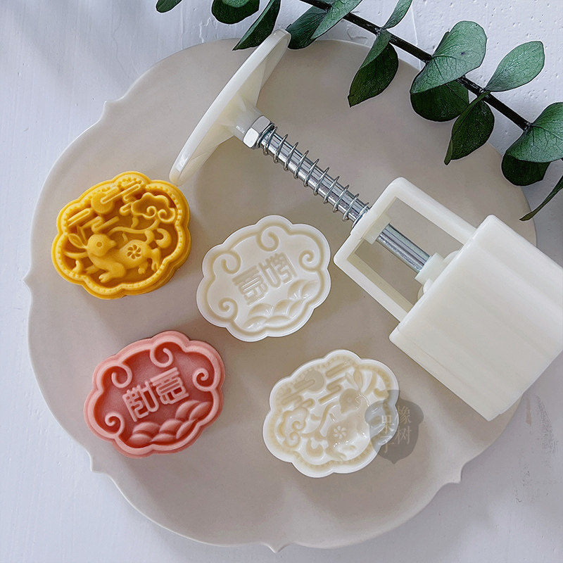 橡树果子中式如意锁月饼模 玉兔中秋节小兔子绿豆糕山药糕模具50g