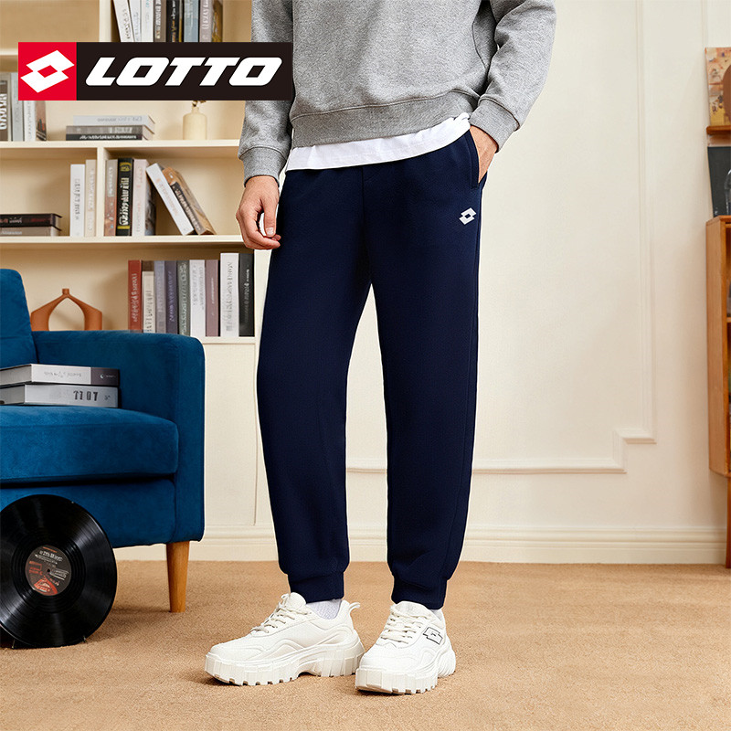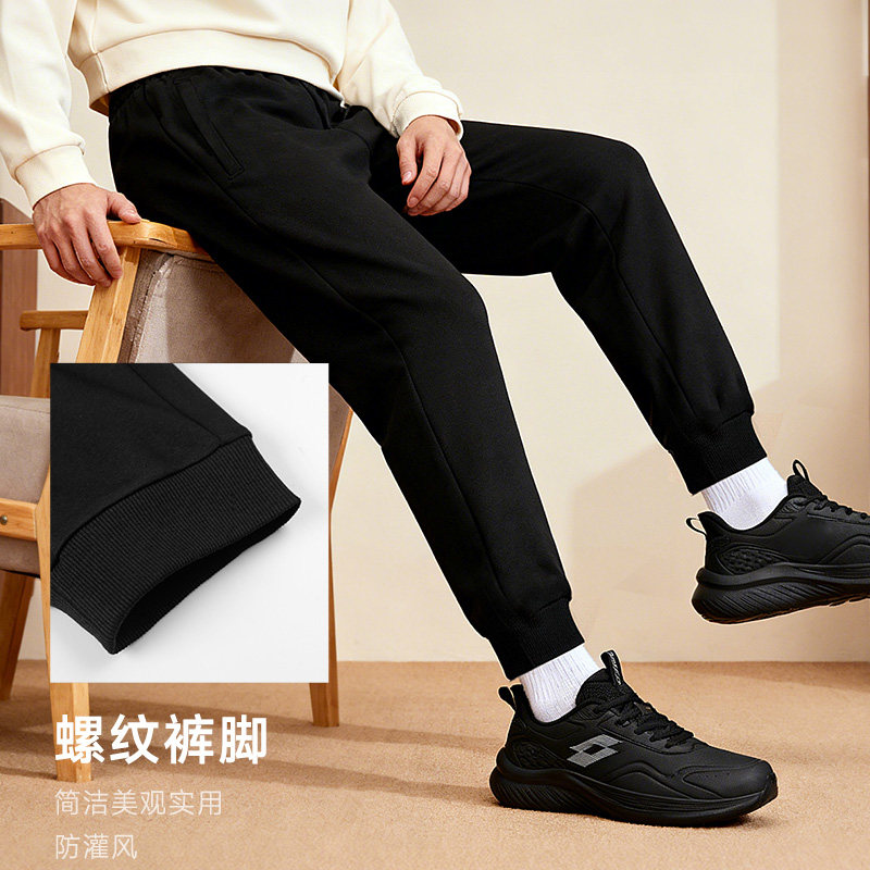 LOTTO乐途男士黑色束脚运动裤2025秋冬新款潮流休闲卫裤针织长裤