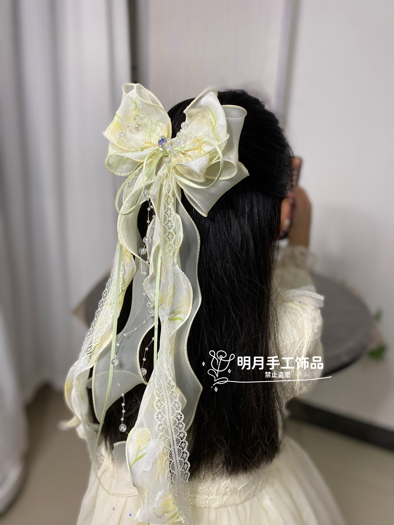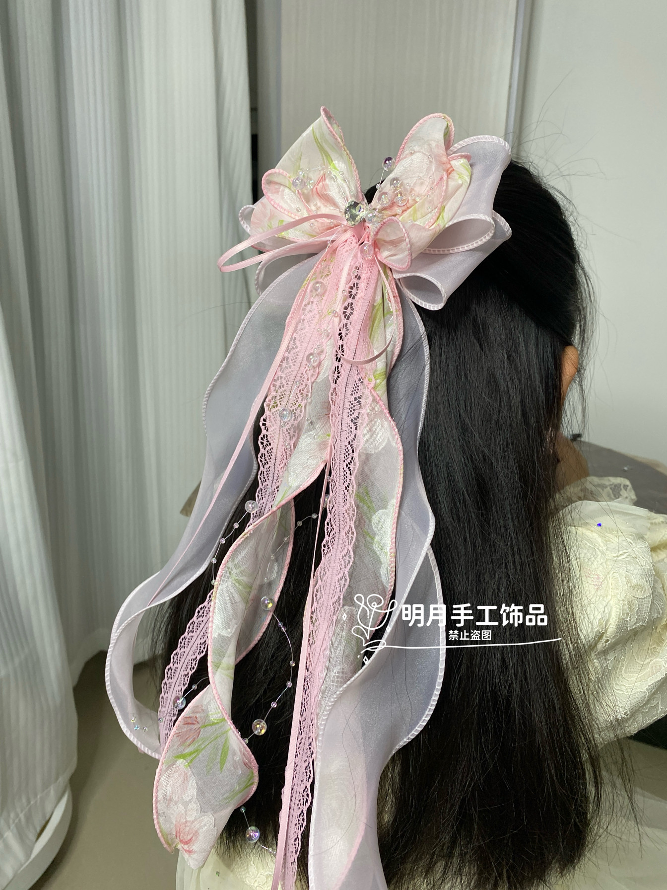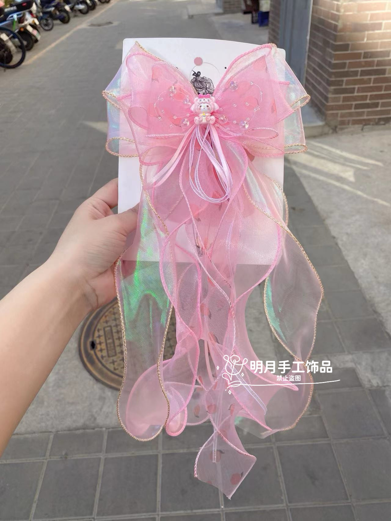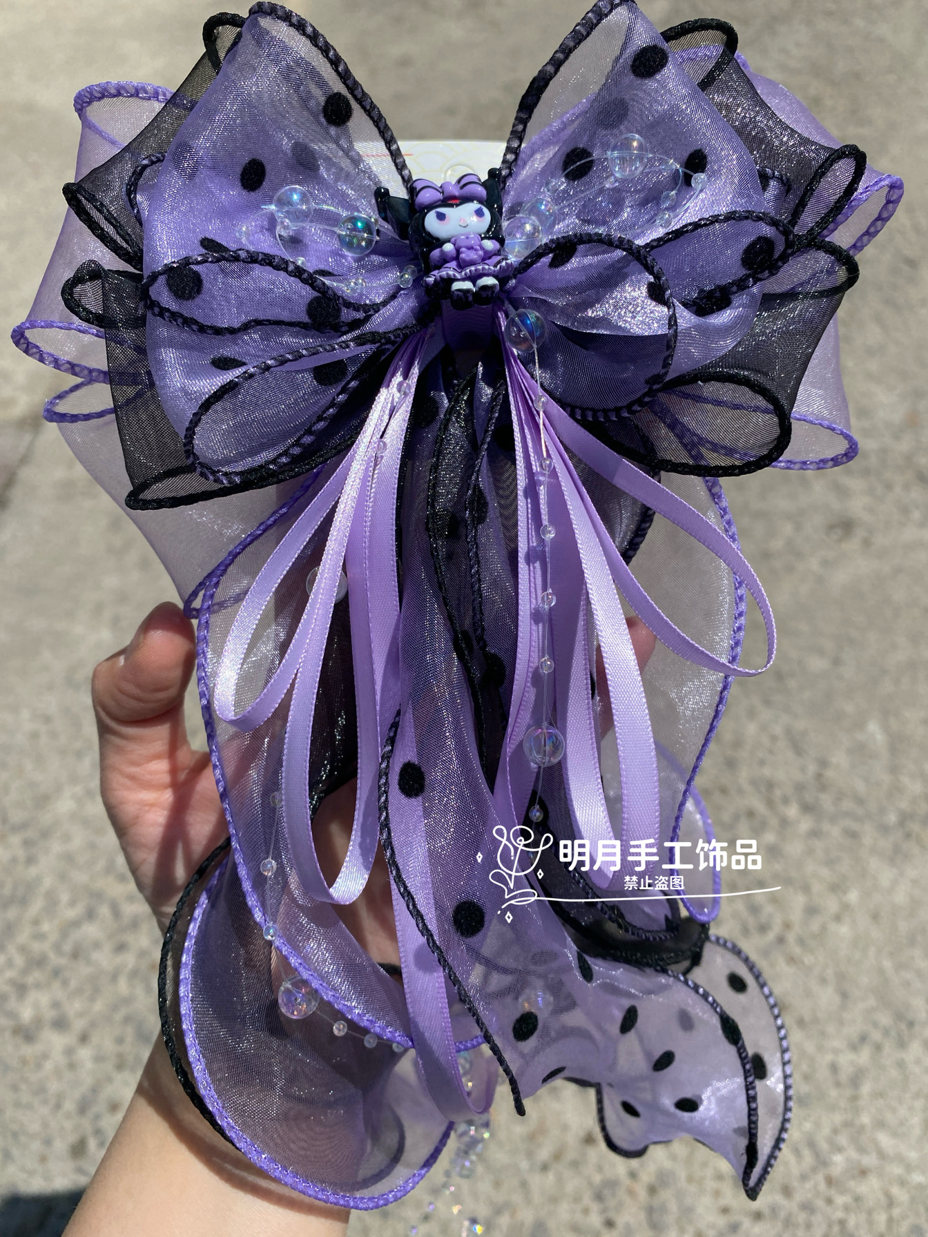 儿童卡通库洛米蝴蝶结发夹超仙紫色波点网纱大飘带蝴蝶结发饰头花