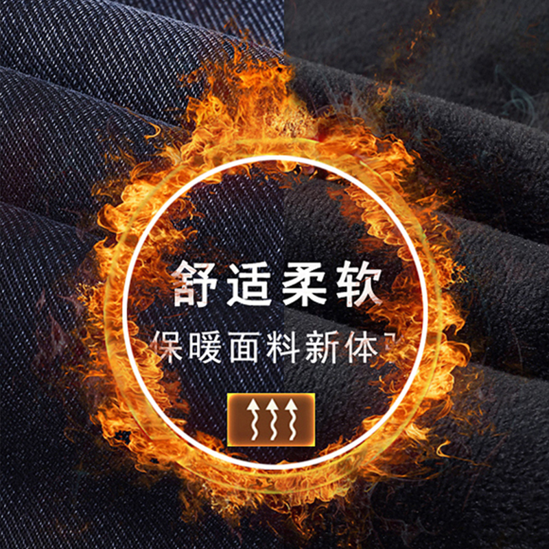 专柜同款老爷车冬季加绒加厚牛仔裤男宽松弹力高腰中年保暖长裤子