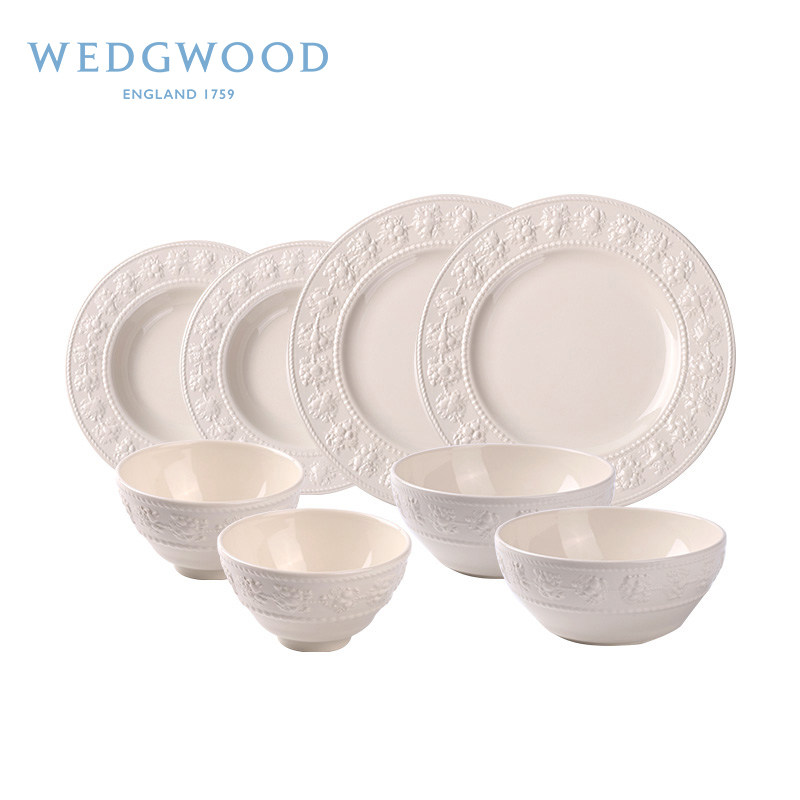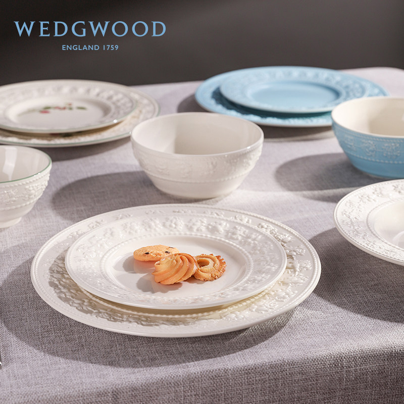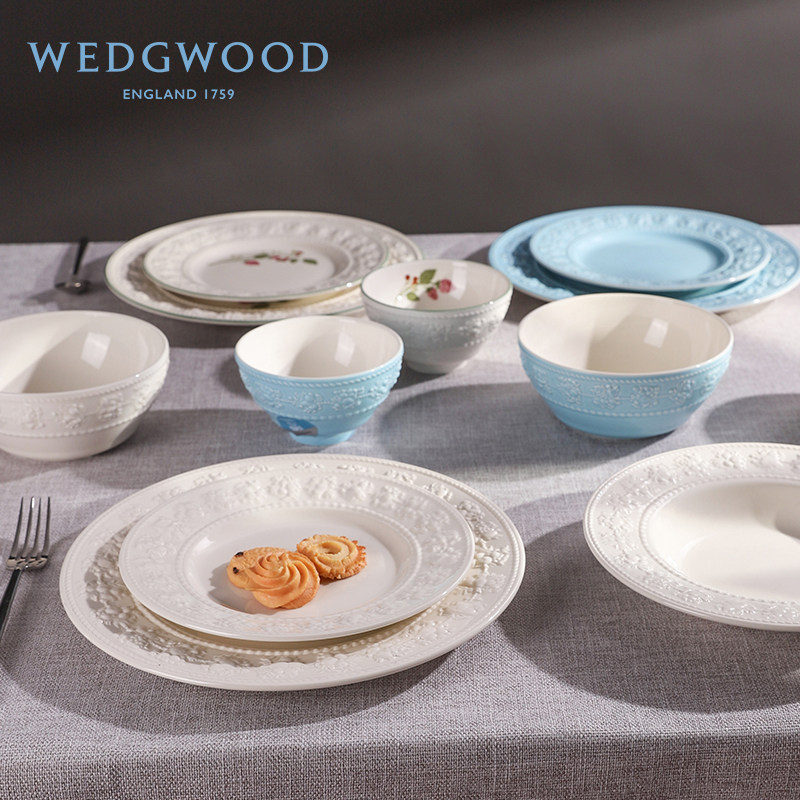 WEDGWOOD威基伍德欢愉假日蓝白8件套双人白色陶瓷米饭碗盘子套装