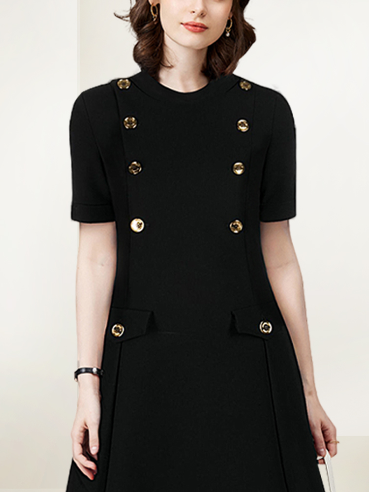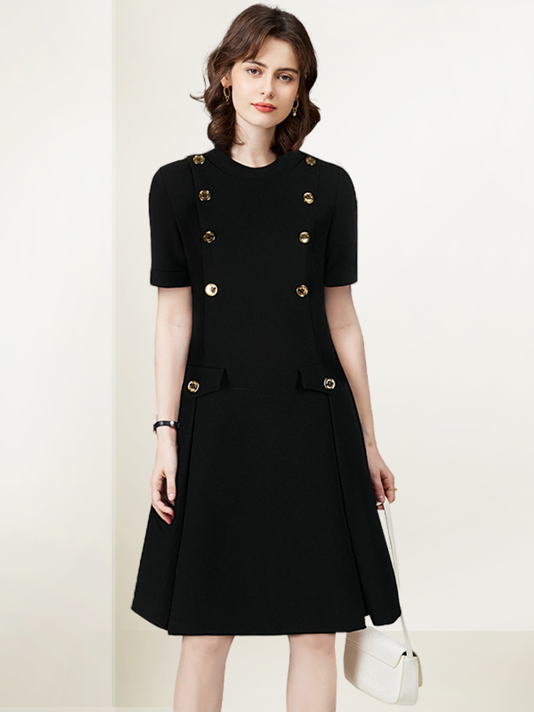 法式黑色赫本小香风连衣裙女2025年夏季新款韩版名媛显瘦大码裙子