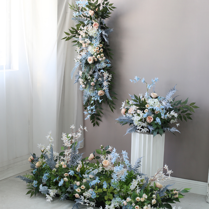蓝色系婚礼布置花艺套装底排花路引花球婚庆背景舞台挂花迎宾装饰