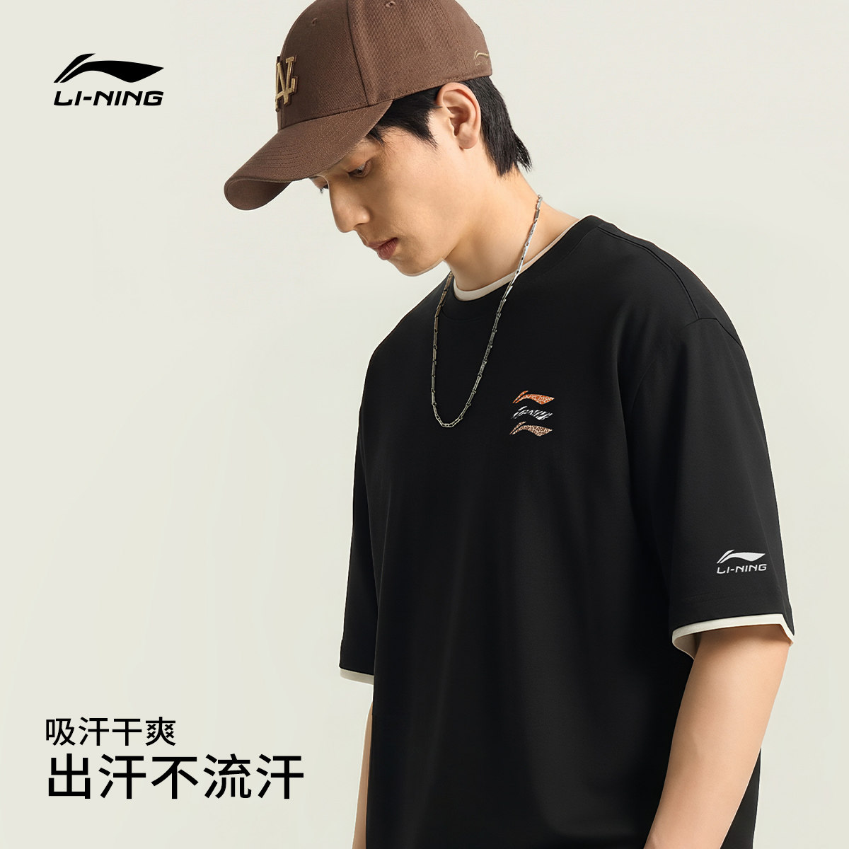 李宁多彩短袖男士2026新款春夏男装圆领上衣休闲半袖针织运动服女