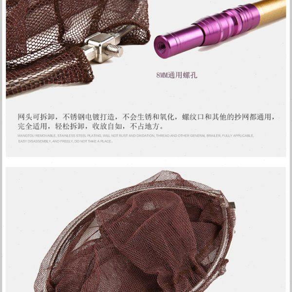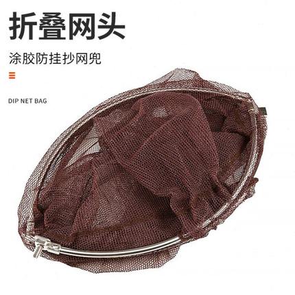 可折叠不锈钢抄网头涂胶防挂抄网兜密网眼网头圈径40cm垂钓渔具