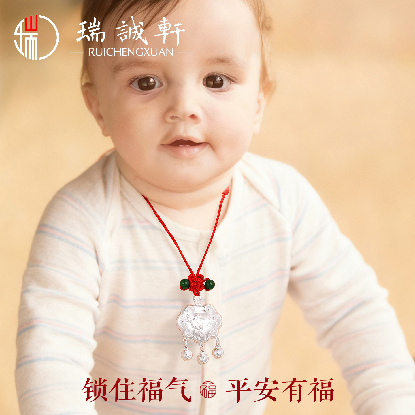 足银9999喜乐马宝宝长命平安锁礼