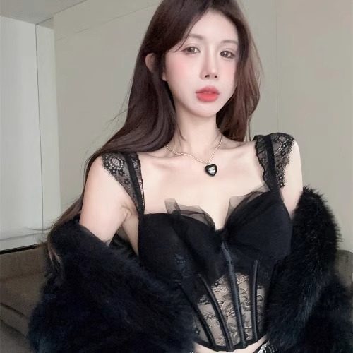 纯欲辣妹鱼骨塑身蕾丝可外穿内搭胸衣防下垂吊带内衣带胸垫文胸