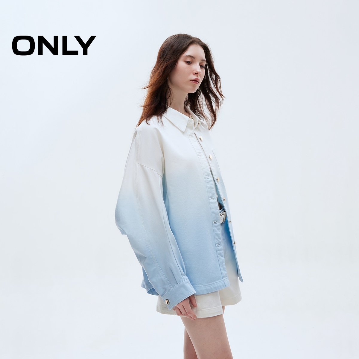ONLY渐变晕染宽松遮肉牛仔衬衫