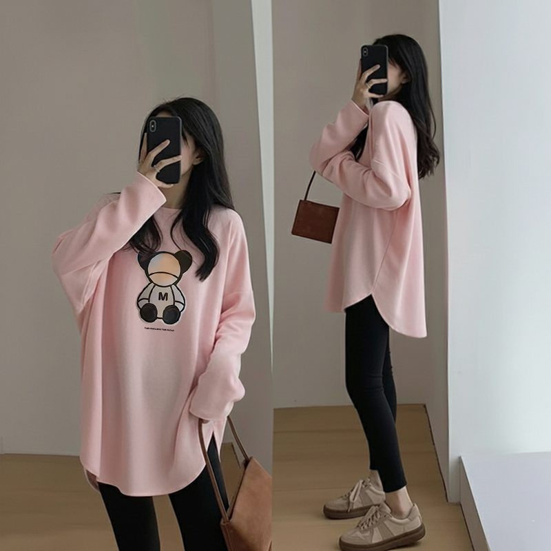 秋冬2025新款大码胖mm德绒打底衫女上衣遮肚宽松外穿长袖t恤显瘦