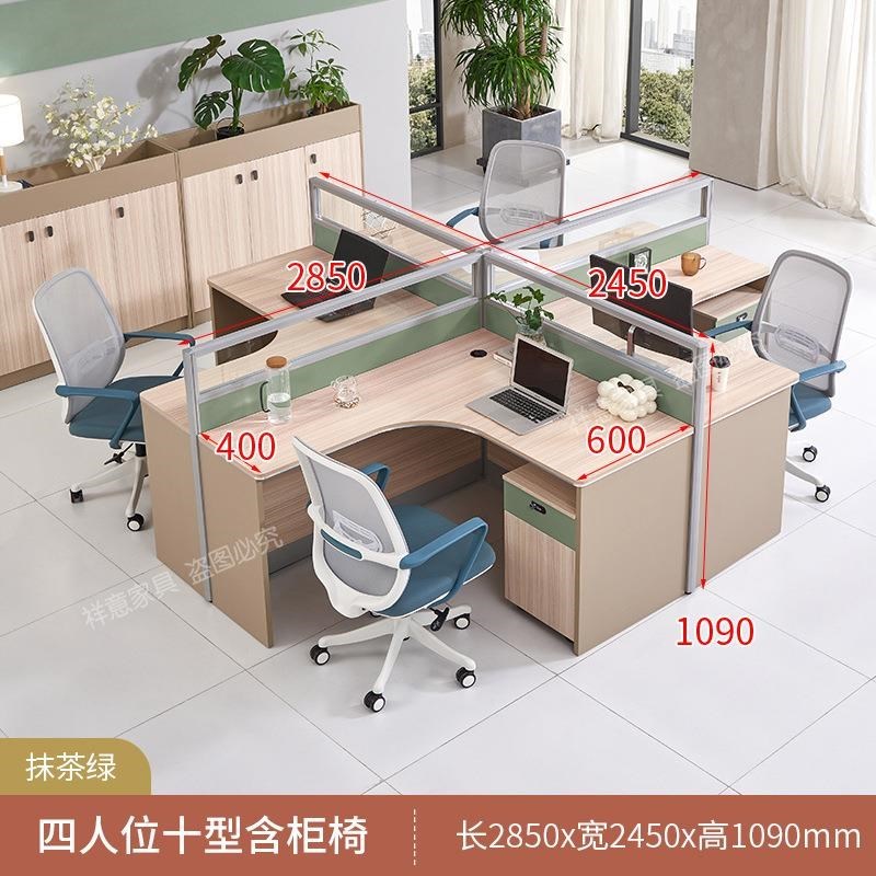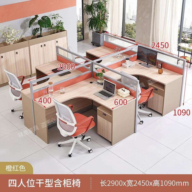 职员办公桌L台面大工位办公室员工屏风卡位双人4人V位电脑工作桌
