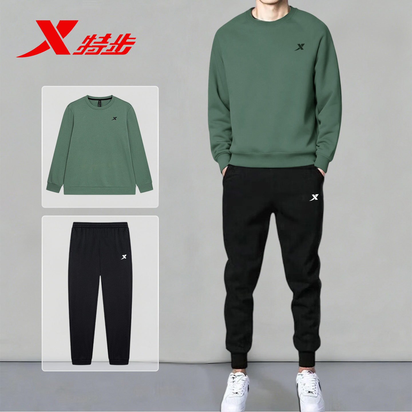 特步运动套装男款卫衣束脚裤子加绒保暖男裤冬季休闲上衣圆领长袖