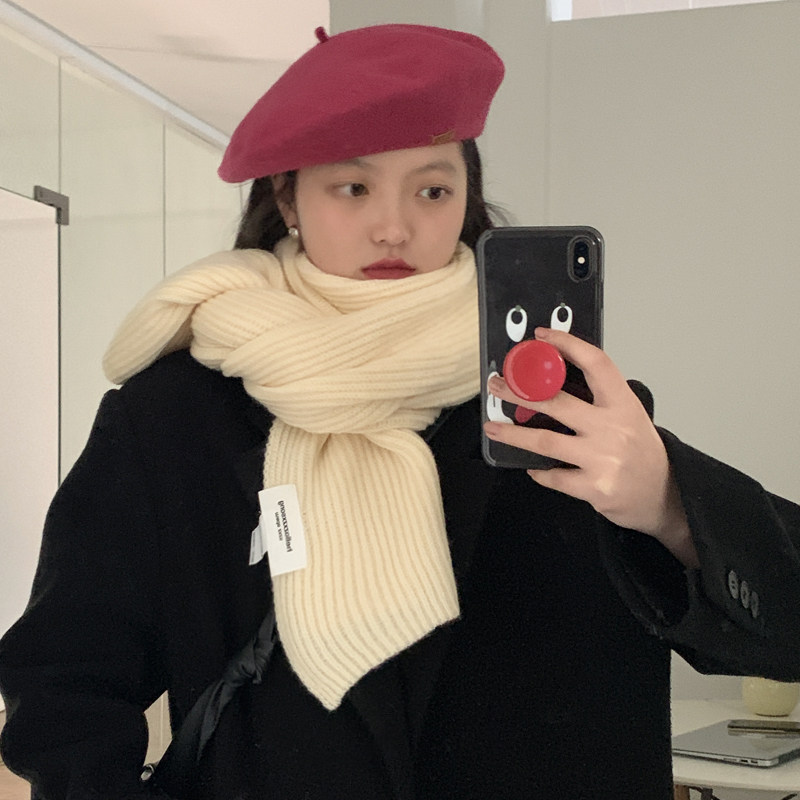 绿色加厚针织毛线围巾女红色