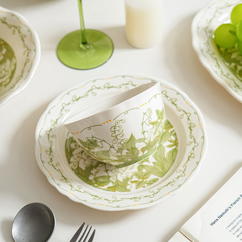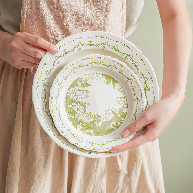 铃兰花盘子菜盘家用餐具陶瓷碗碟深盘2025新款高级感鱼盘汤盘