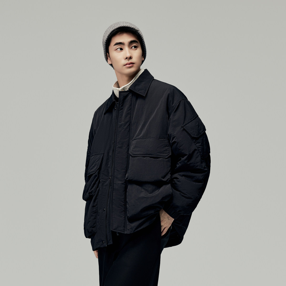 【商场同款】太平鸟男装多口袋棉衣潮翻领外套工装棉服B2ABD4311