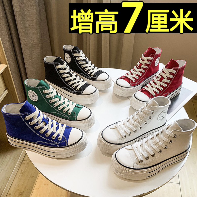 帆布鞋女红色高帮休闲厚底2025春季百搭ins潮内增高小白鞋板鞋