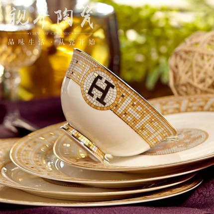 单品搭配陶瓷器家用碗碟景德镇骨瓷高脚碗盘餐具套装欧式饭碗面碗