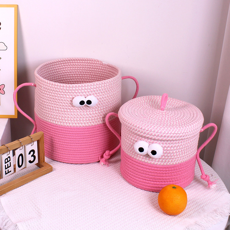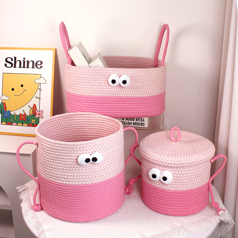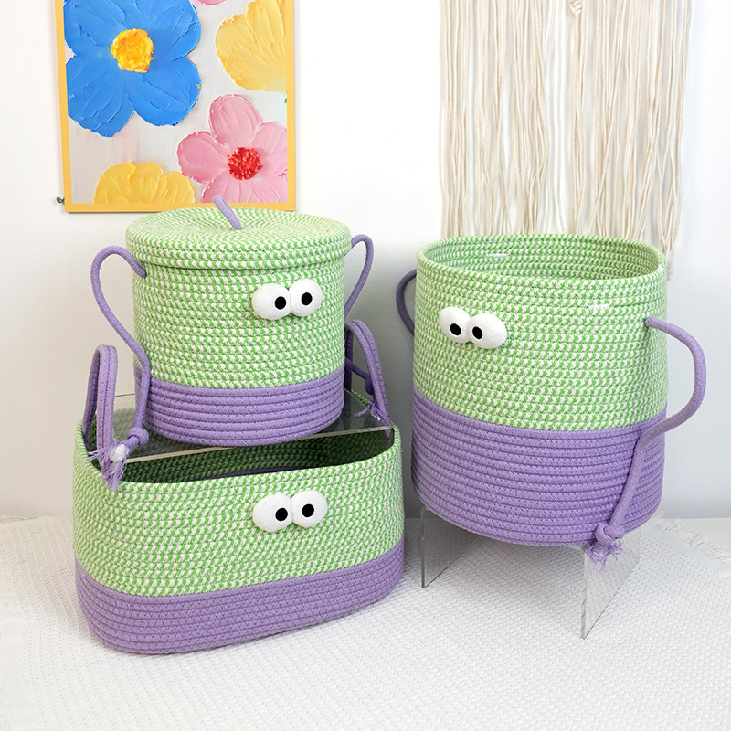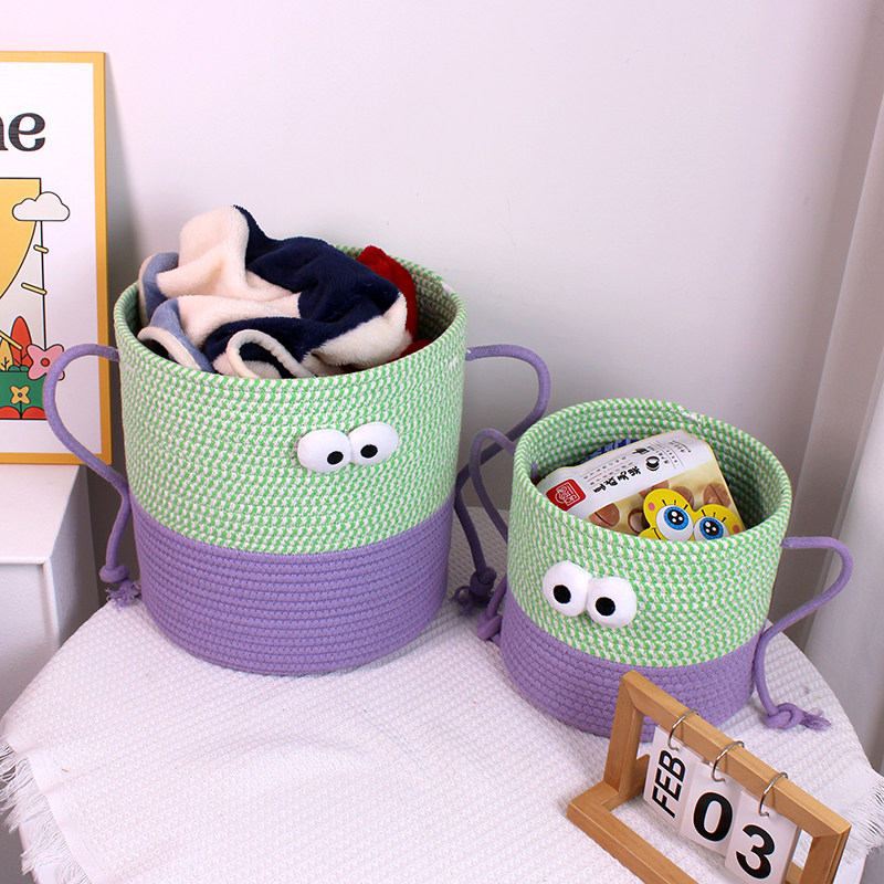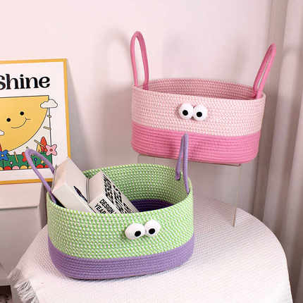 呆萌大眼小怪兽棉线绳编织篮置物篮桌面零食脏衣服书本玩具收纳筐
