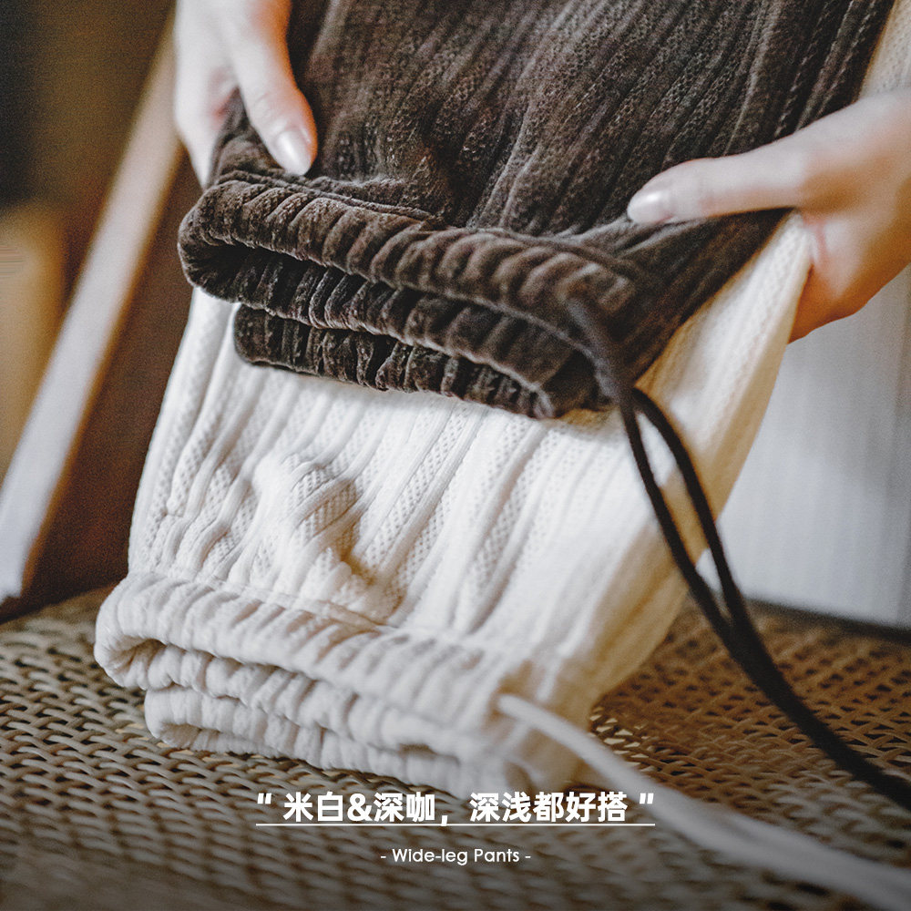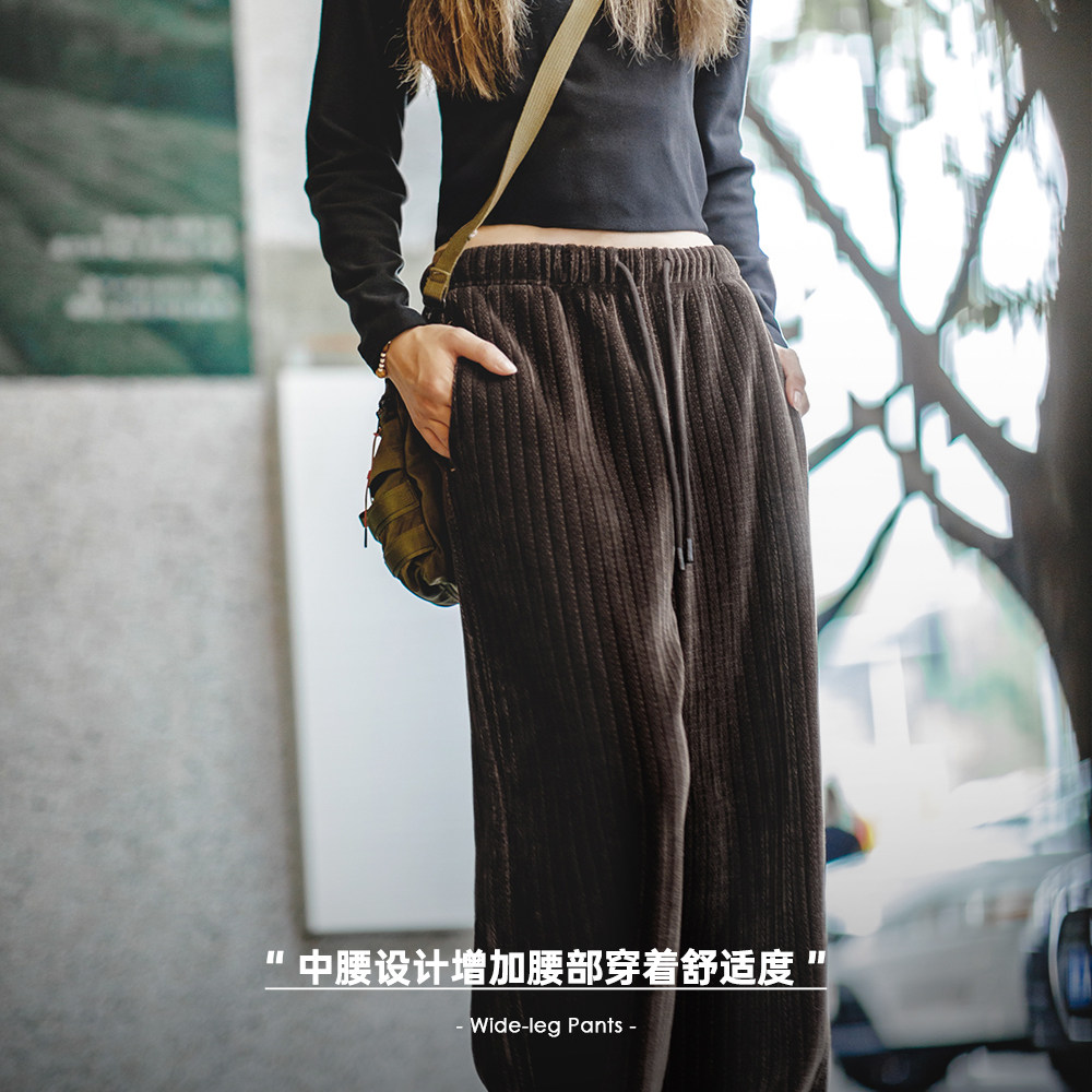 马登雅丹风复古雪尼尔裤秋冬拖地窄版直筒垂感阔腿风休闲长裤子女