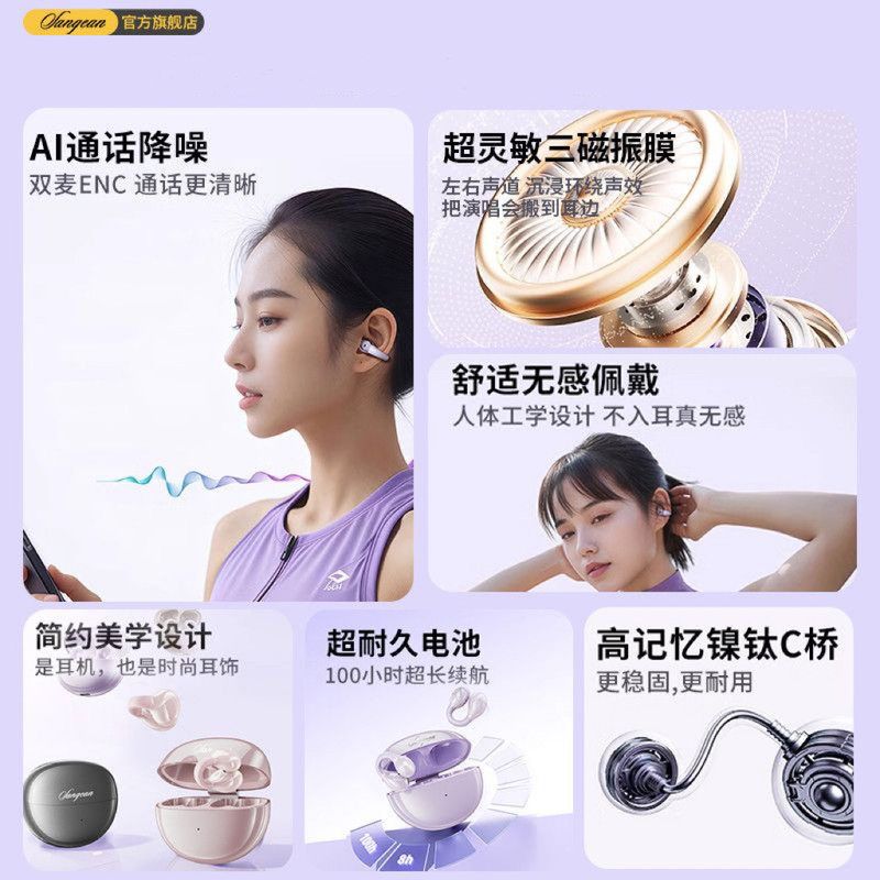 山进2024新款气传导无线蓝牙耳机高颜值高音质运动音乐夹耳式新型