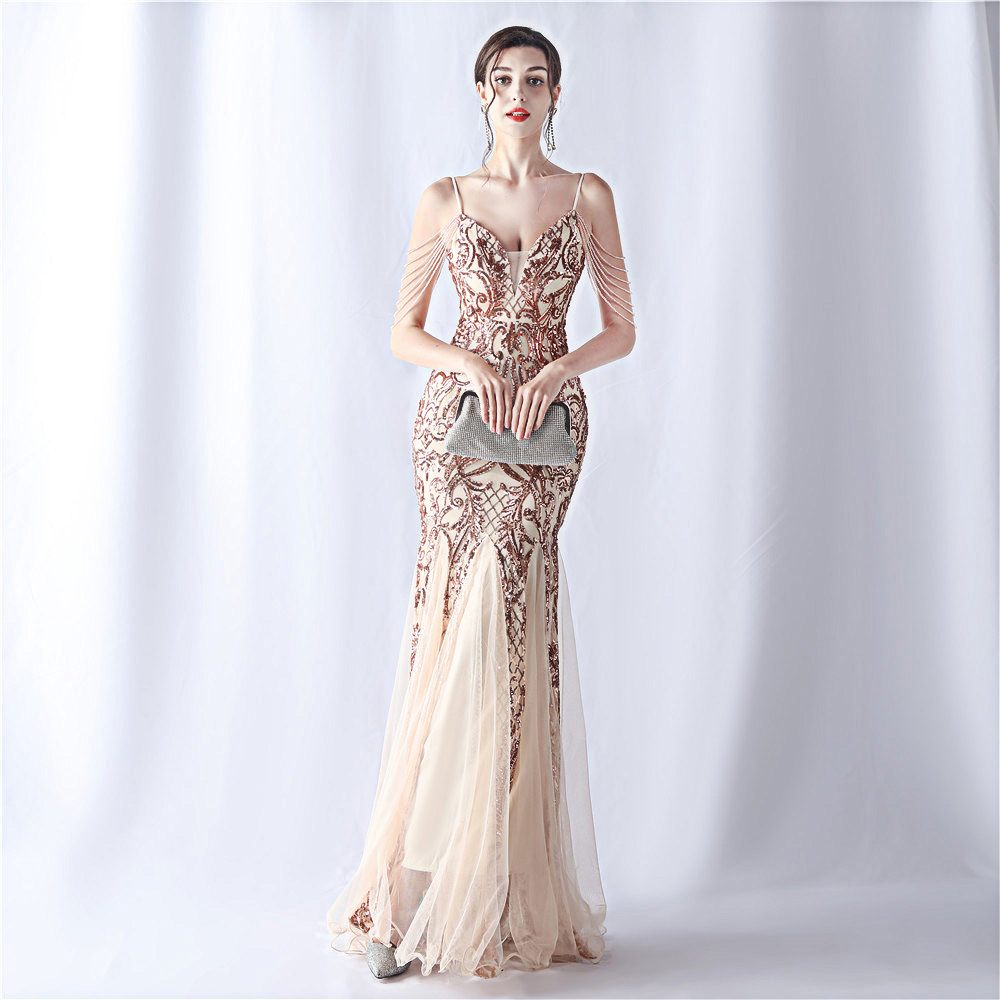 晚礼服裙女重工高级感公司年会主持人气质名媛宴会聚会长款连衣裙