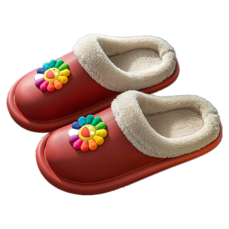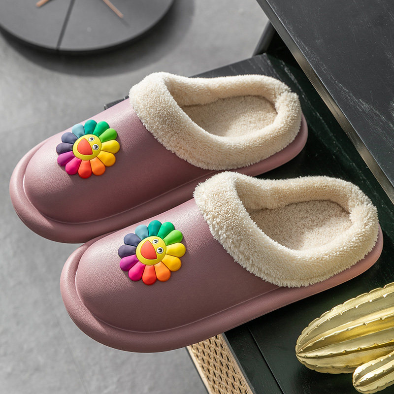 太阳花棉拖鞋秋冬季保暖防水毛绒