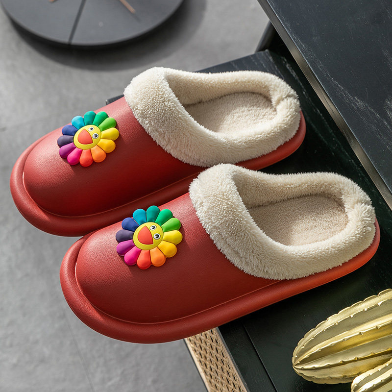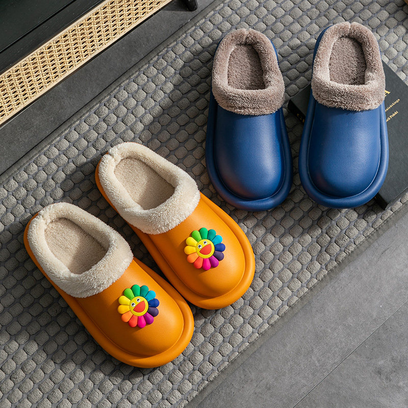 太阳花棉拖鞋秋冬季家用保暖防水防滑可爱时尚情侣毛绒厚底月子鞋