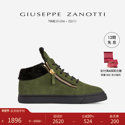 [臻选特惠]Giuseppe ZanottiGZ男士保暖毛内里中帮运动鞋板鞋