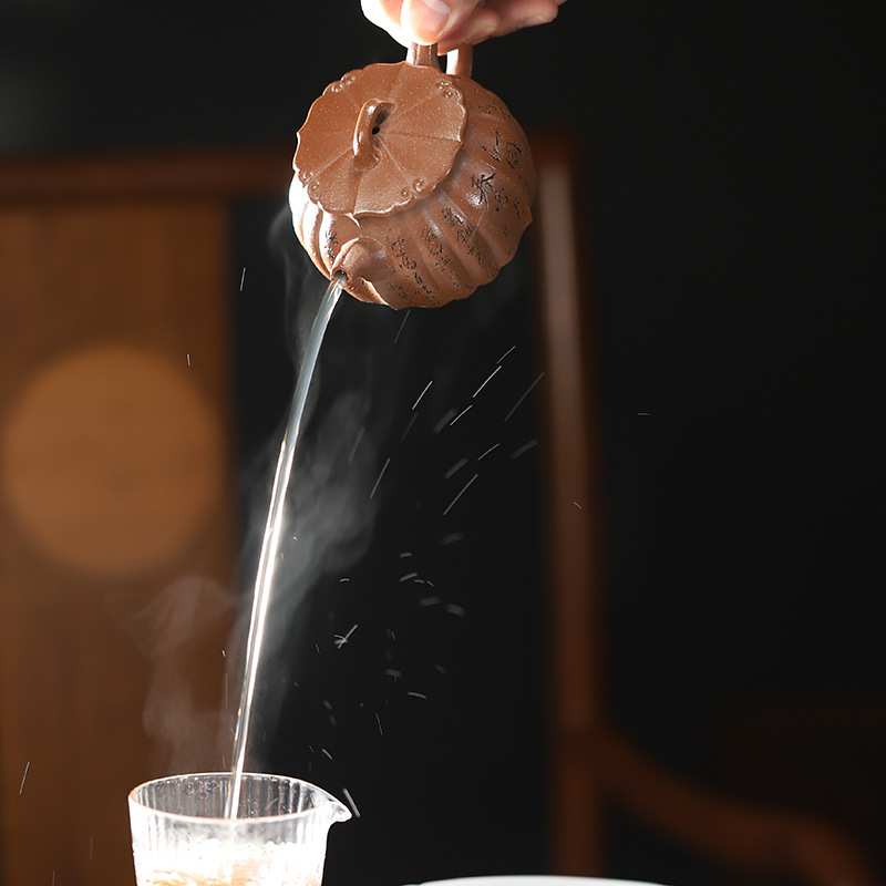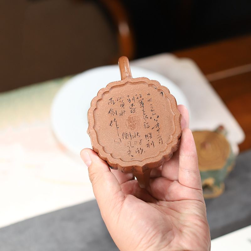 原矿降坡纯手工刻绘筋纹合菱160ml宜兴紫砂壶中式功夫泡茶壶茶具