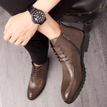 马丁靴男中帮冬季加绒2025新款潮增高英伦风商务软皮男士高帮皮鞋