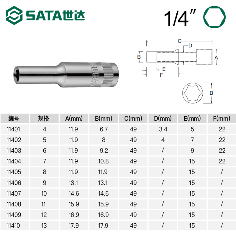 Sata/世达小飞加长型六角套筒