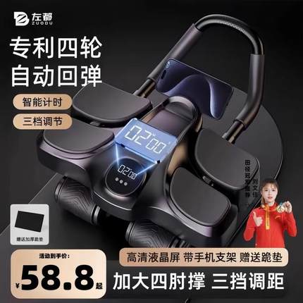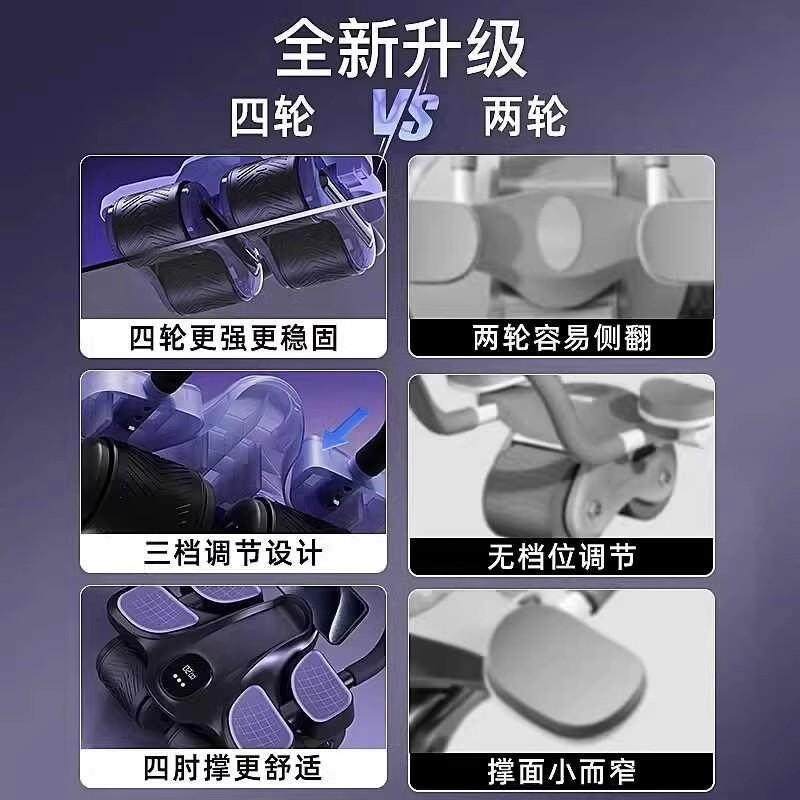 新款四轮健腹轮自动回弹练腹肌神器男女士家用卷腹瘦肚子运动器材