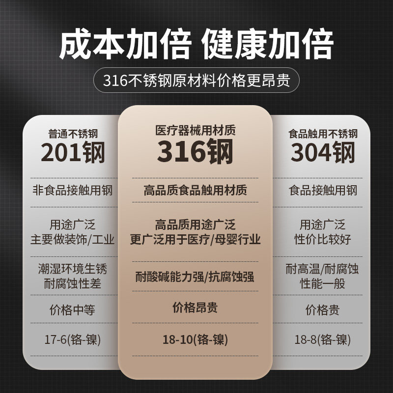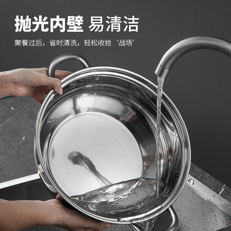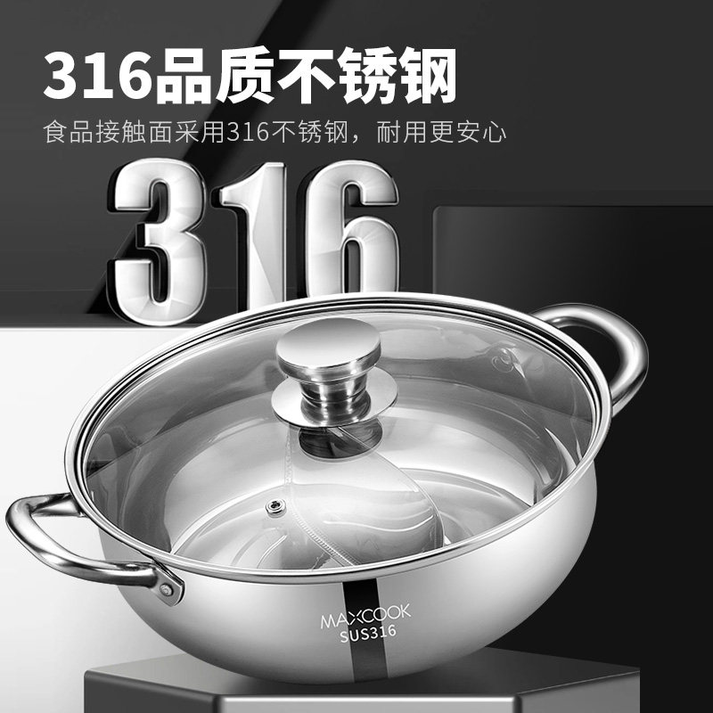 美厨316不锈钢火锅汤锅厨房家用边炉带盖子加厚复底燃气电磁炉用