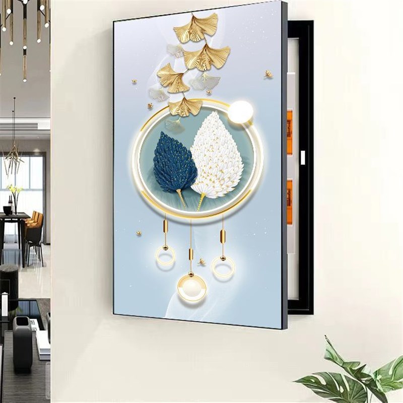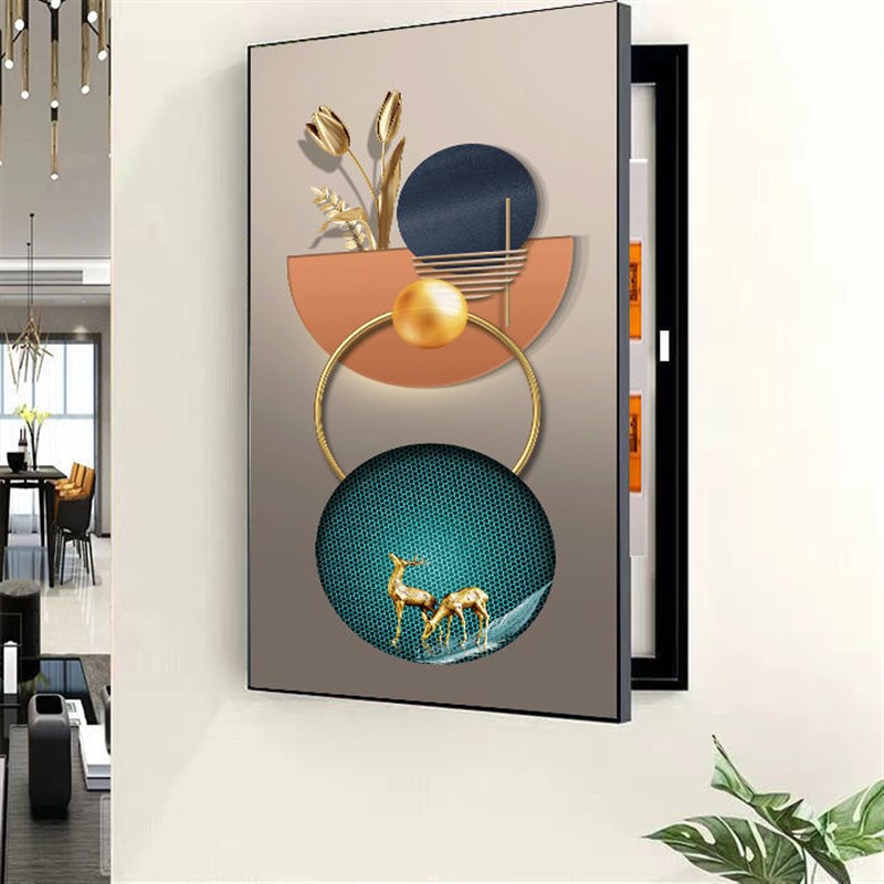 竖版侧开电表箱装饰画p免打孔简约风竖款客厅挂画遮挡电闸盒配电