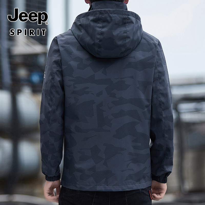 JEEPSPIRIT可拆卸帽冲锋衣夹克