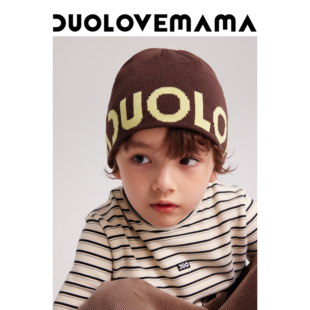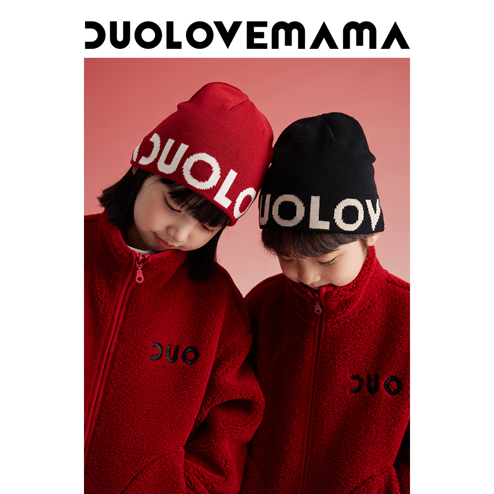 DUOLOVEMAMA 酷潮logo百搭温暖护耳针织毛线帽男女儿童滑雪帽子冬