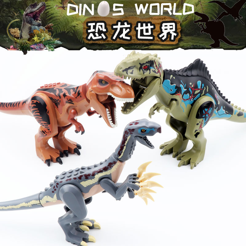 侏罗纪恐龙积木暴虐霸王龙巨兽龙镰刀龙拼装世界男孩玩具公园棘龙