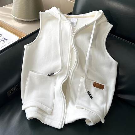 加绒连帽无袖马甲卫衣2025秋冬装