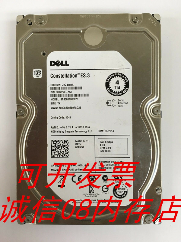 DELL 0529FG ST4000NM0023 4T SAS 3.5 7.2K 9ZM270-150硬盘R230