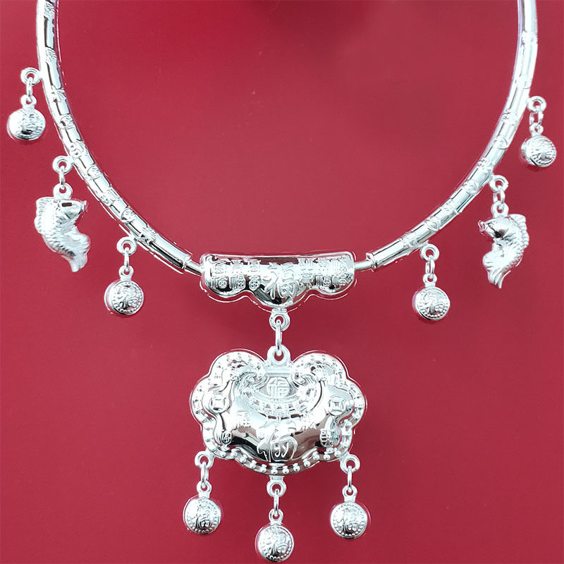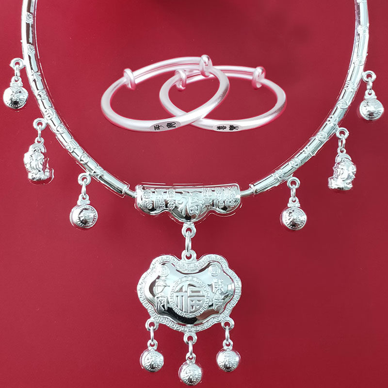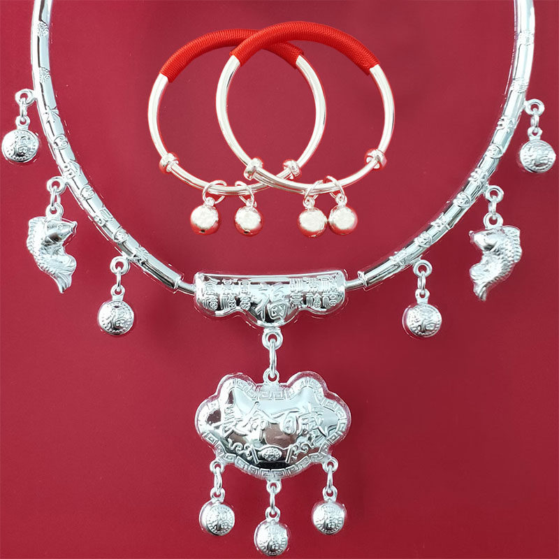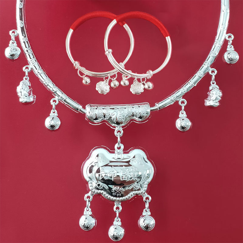 银锁足银小孩长命锁纯银999宝宝银项圈男女婴儿百岁满月周岁礼物