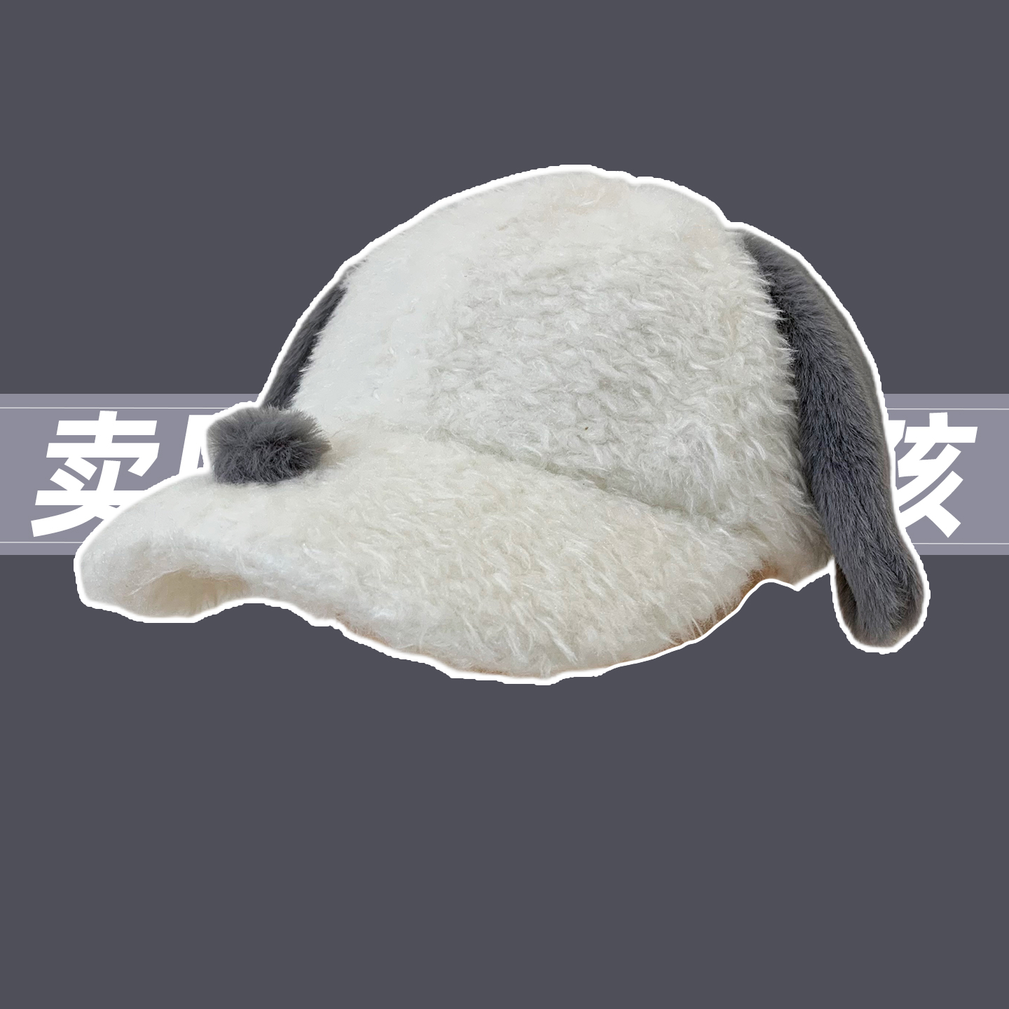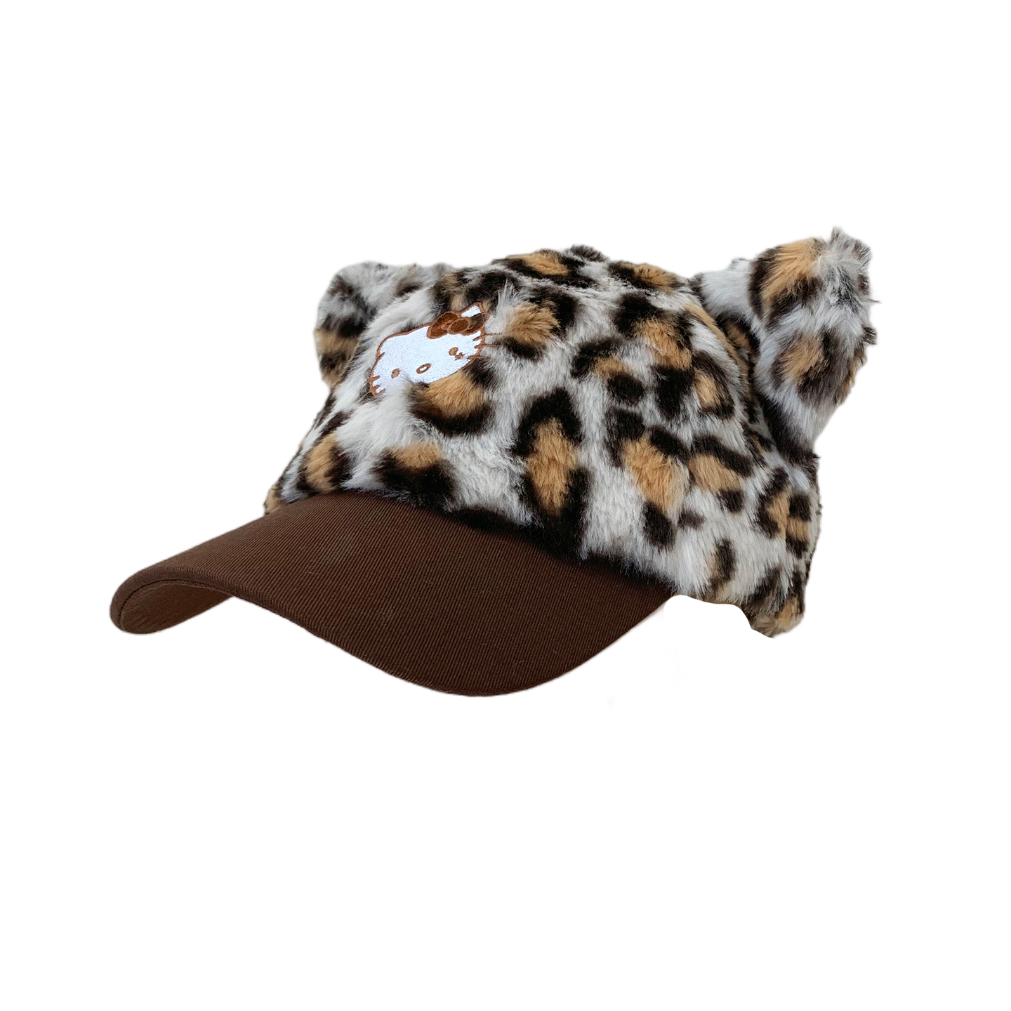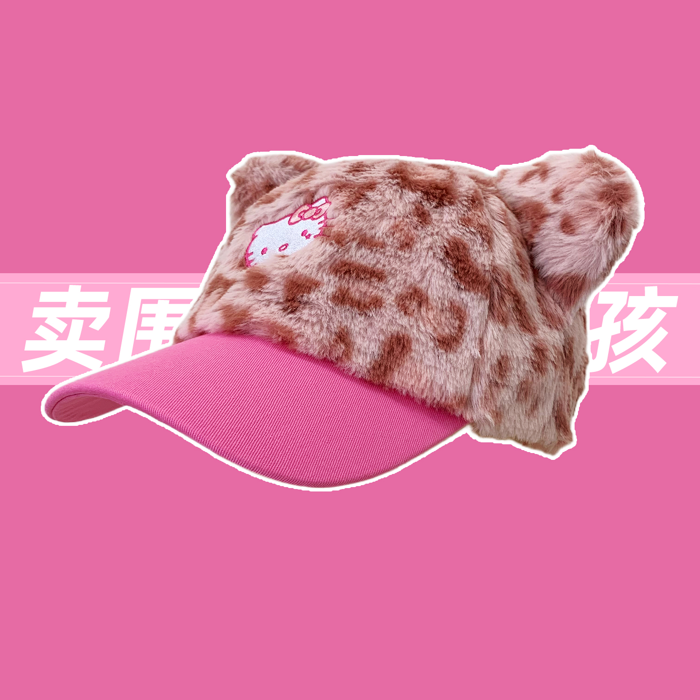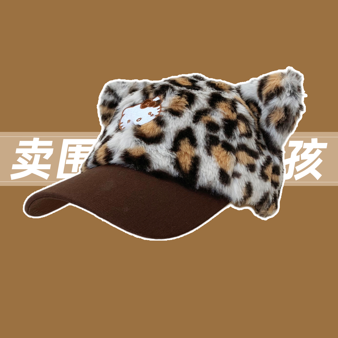 可爱卡通豹纹Kitty棒球帽子女秋冬显脸小时尚百搭保暖毛绒鸭舌帽