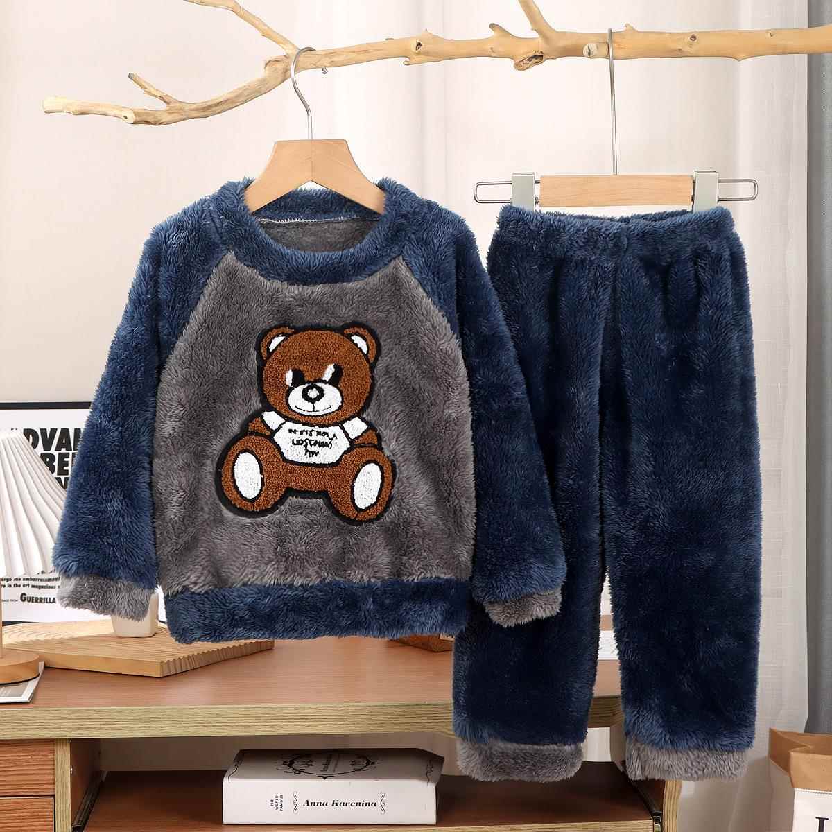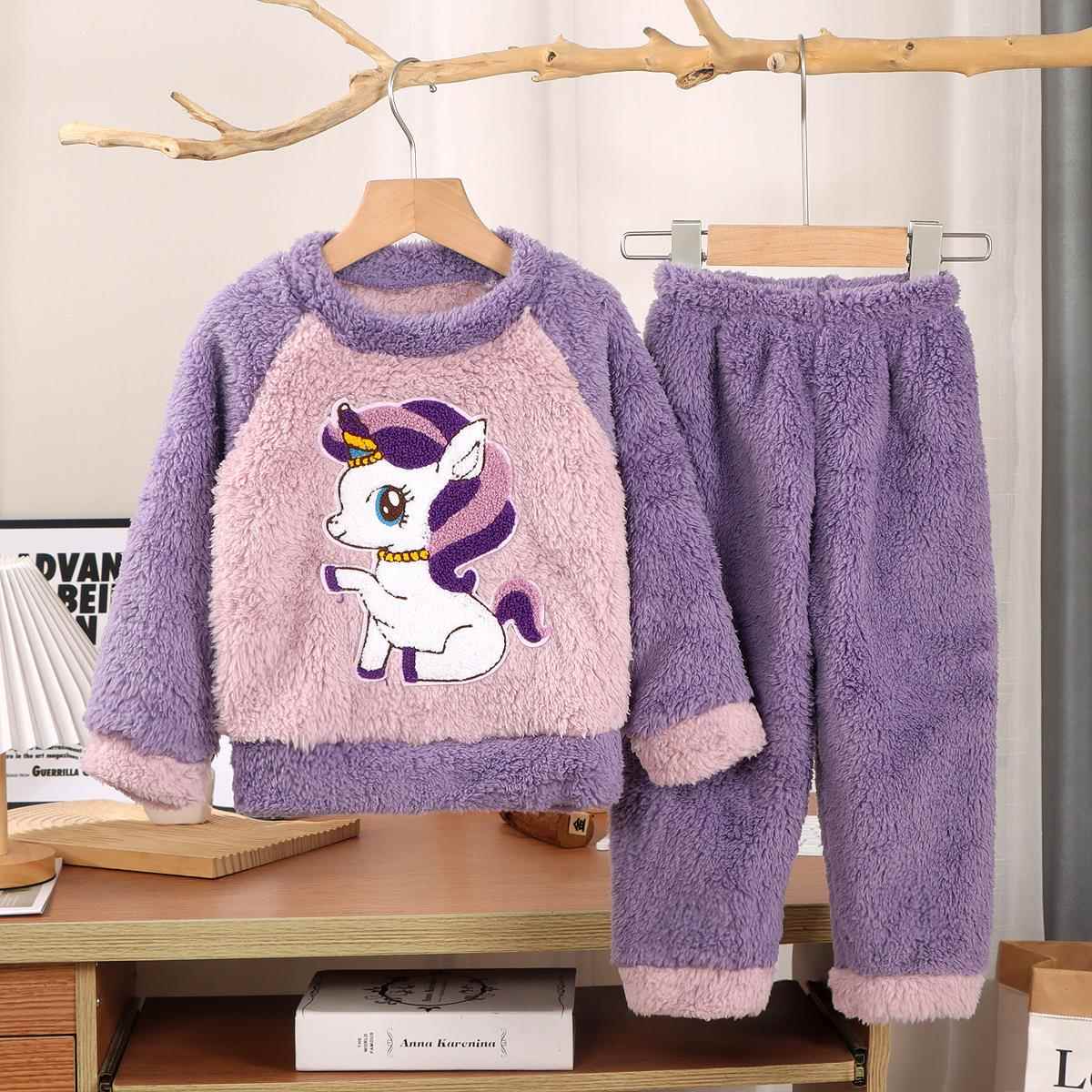 儿童法兰绒睡衣男童女童珊瑚绒套装中大童秋冬加绒加厚长毛家居服