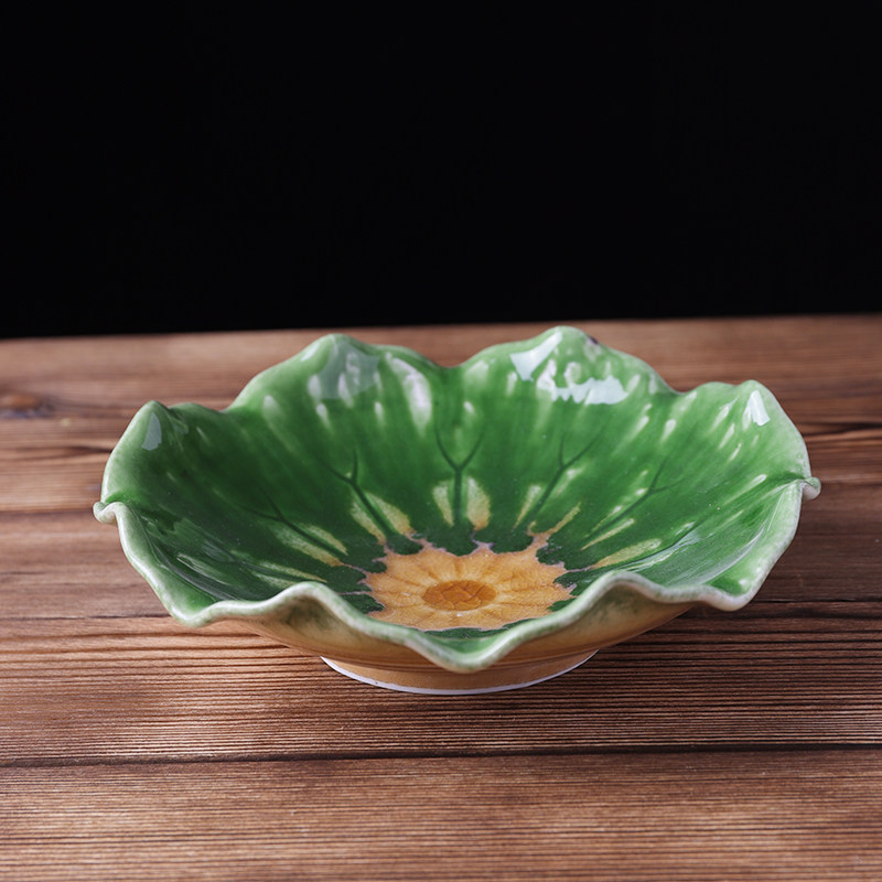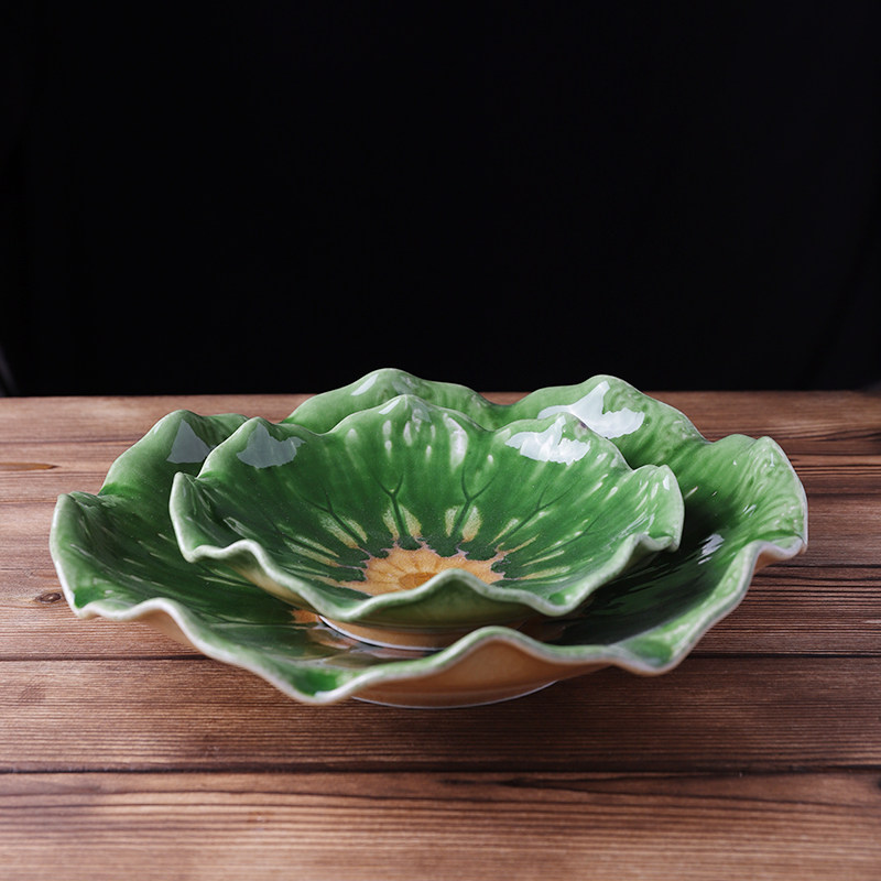 日式陶瓷餐具创意卷叶盘酒店沙拉盘果盘不规则深盘怀石料理刺身盘