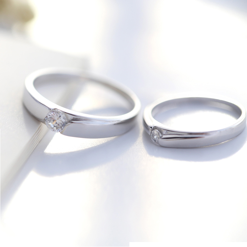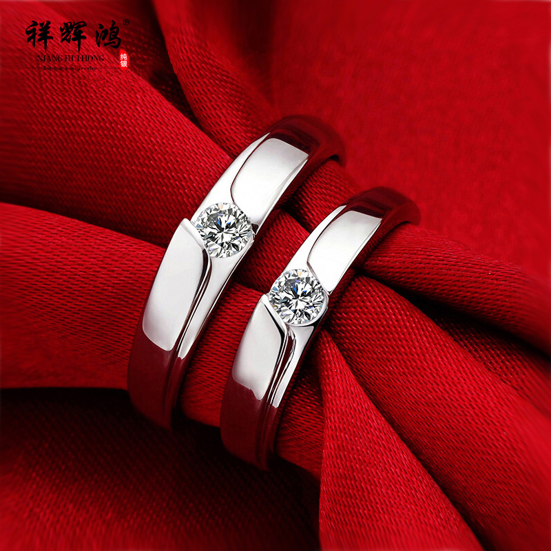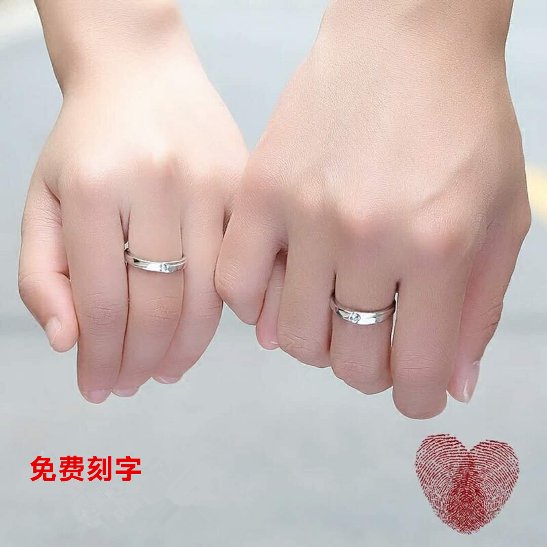 S925纯银情侣戒指一对学生简约对戒男女仿真结婚铂金钻戒活口刻字