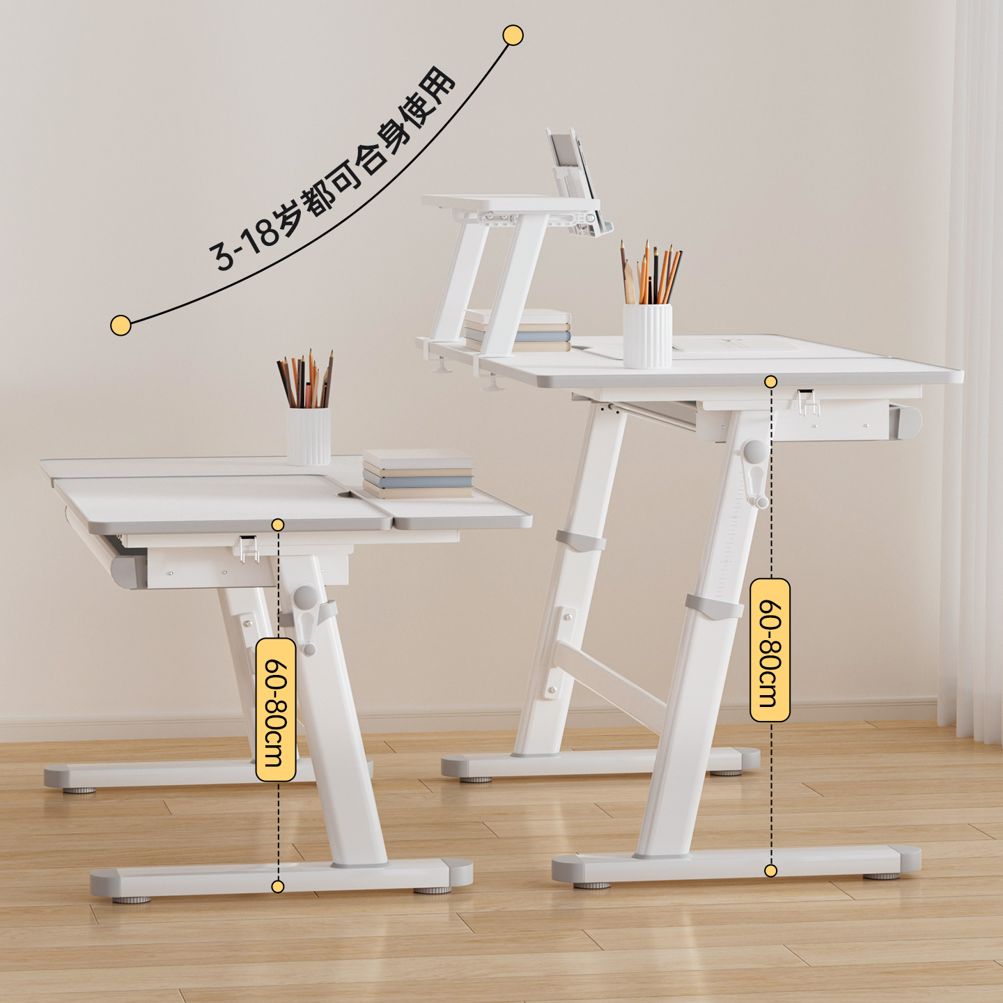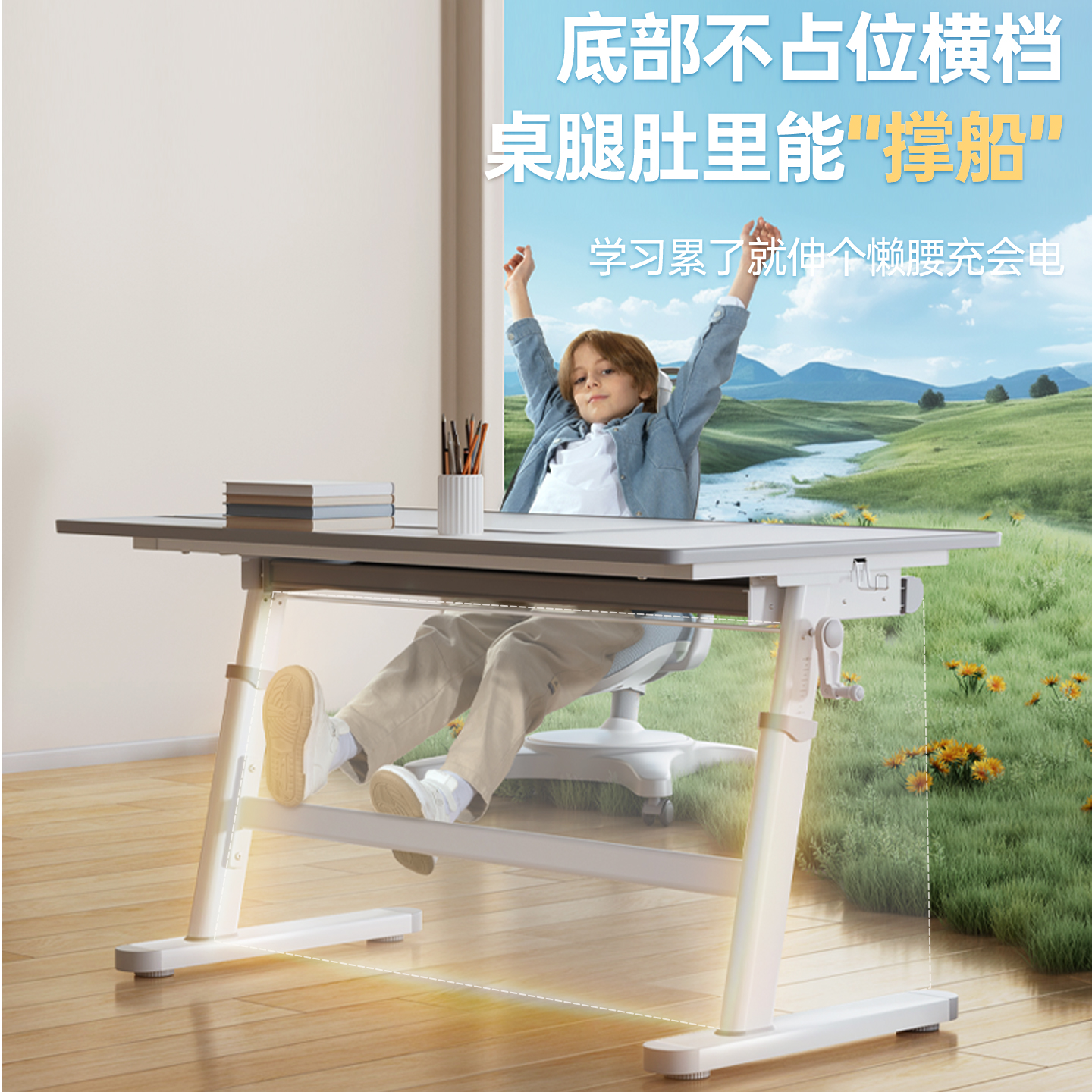 日本godvane儿童学习大白书桌椅套装实木可升降中小学生写字家用