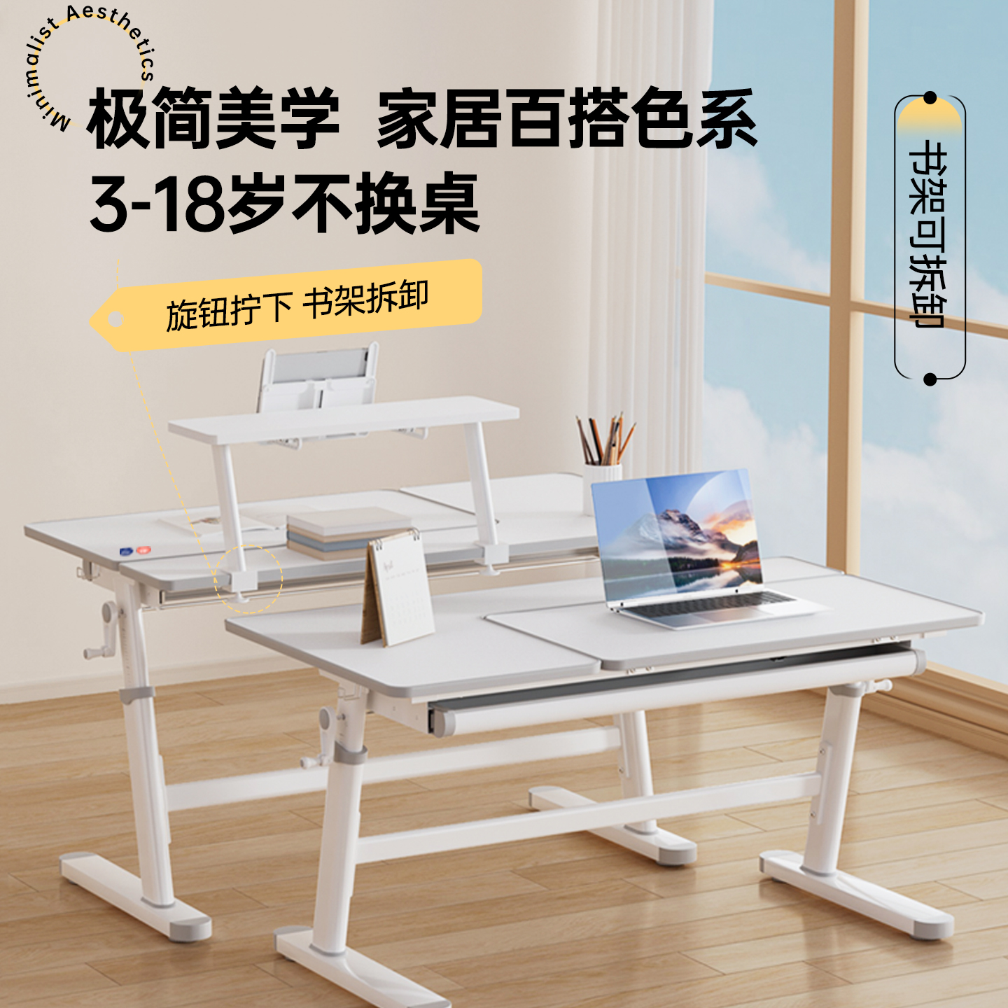 正习冬青杨木可升降可拆卸书架